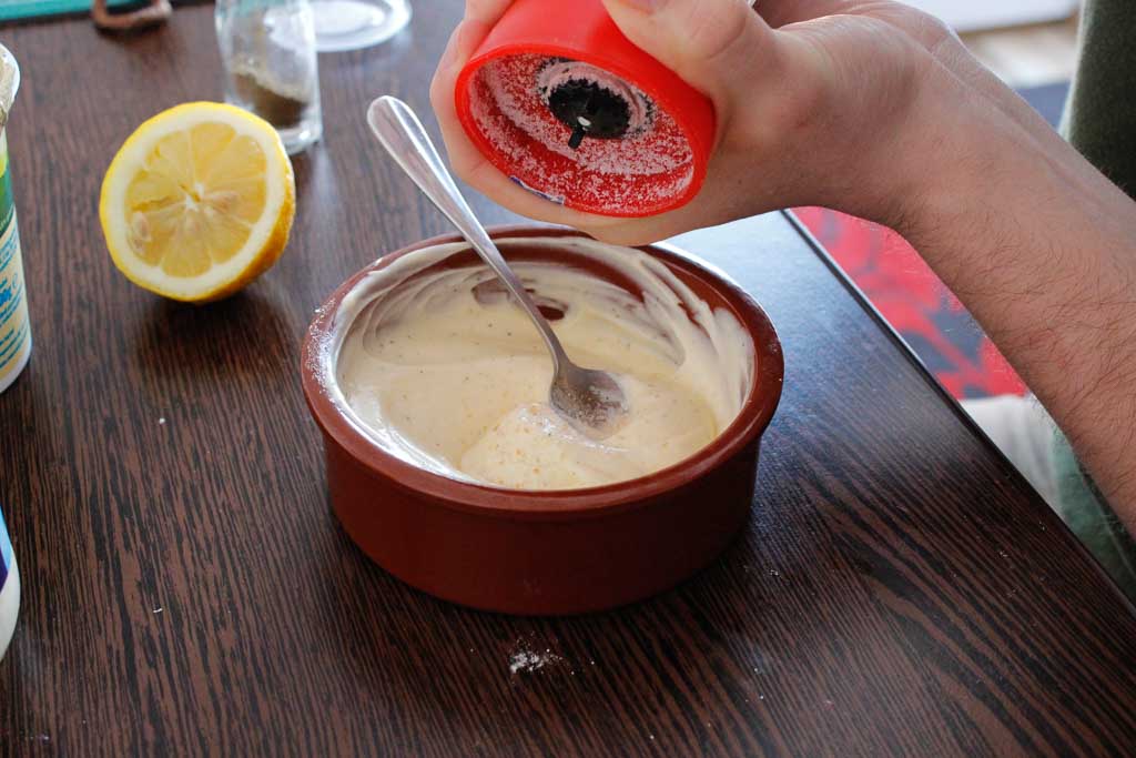 5. Mix everything and add more sour cream if you want the sauce lighter.