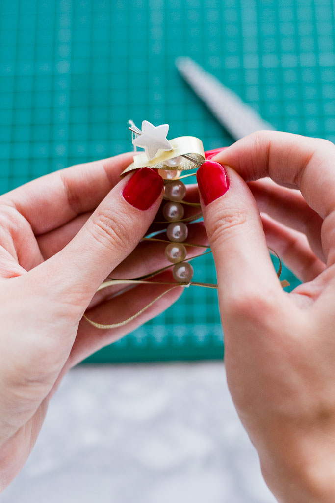 - white star beads – to put on top of each tiny tree. You’ll need one for each ornament.